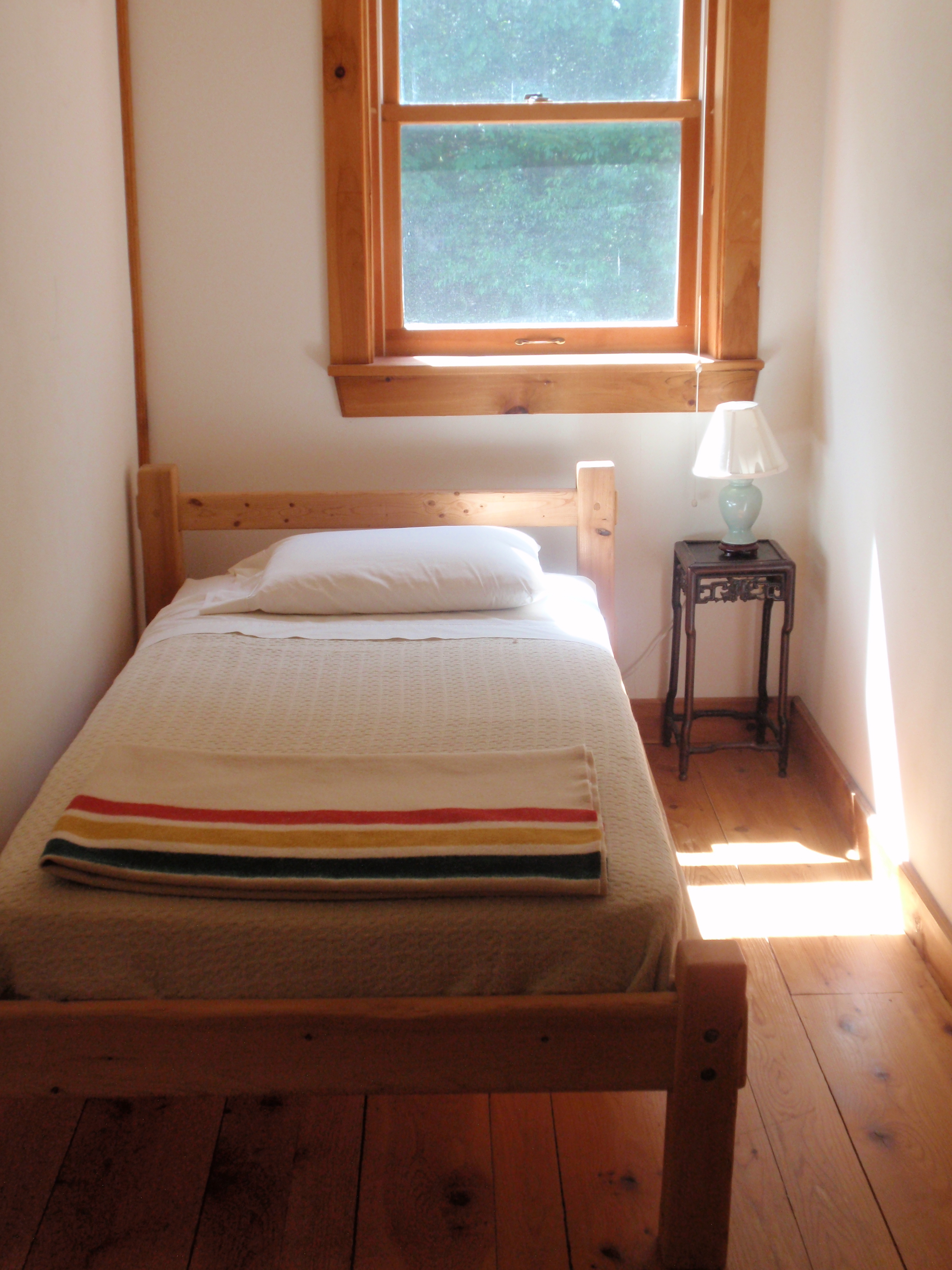 Our three dorm-style guest rooms contain sturdy wooden bunk beds and come furnished with all- cotton sheets, pillows, and season-appropriate bedding, as do the three private guest rooms, each with a double or queen-sized bed. Each dorm room has 5 or 6 single beds. Each private room has a queen-sized bed.